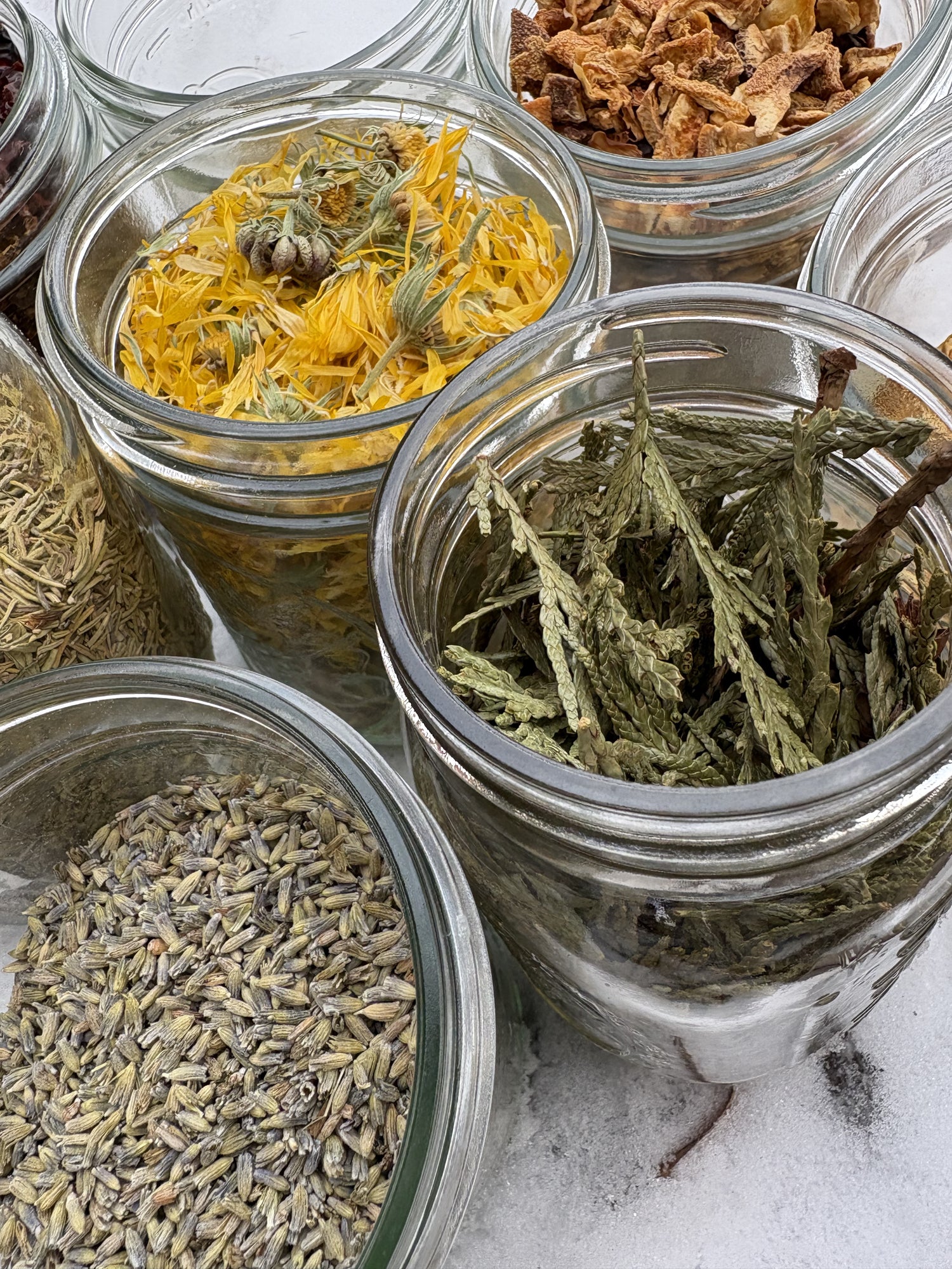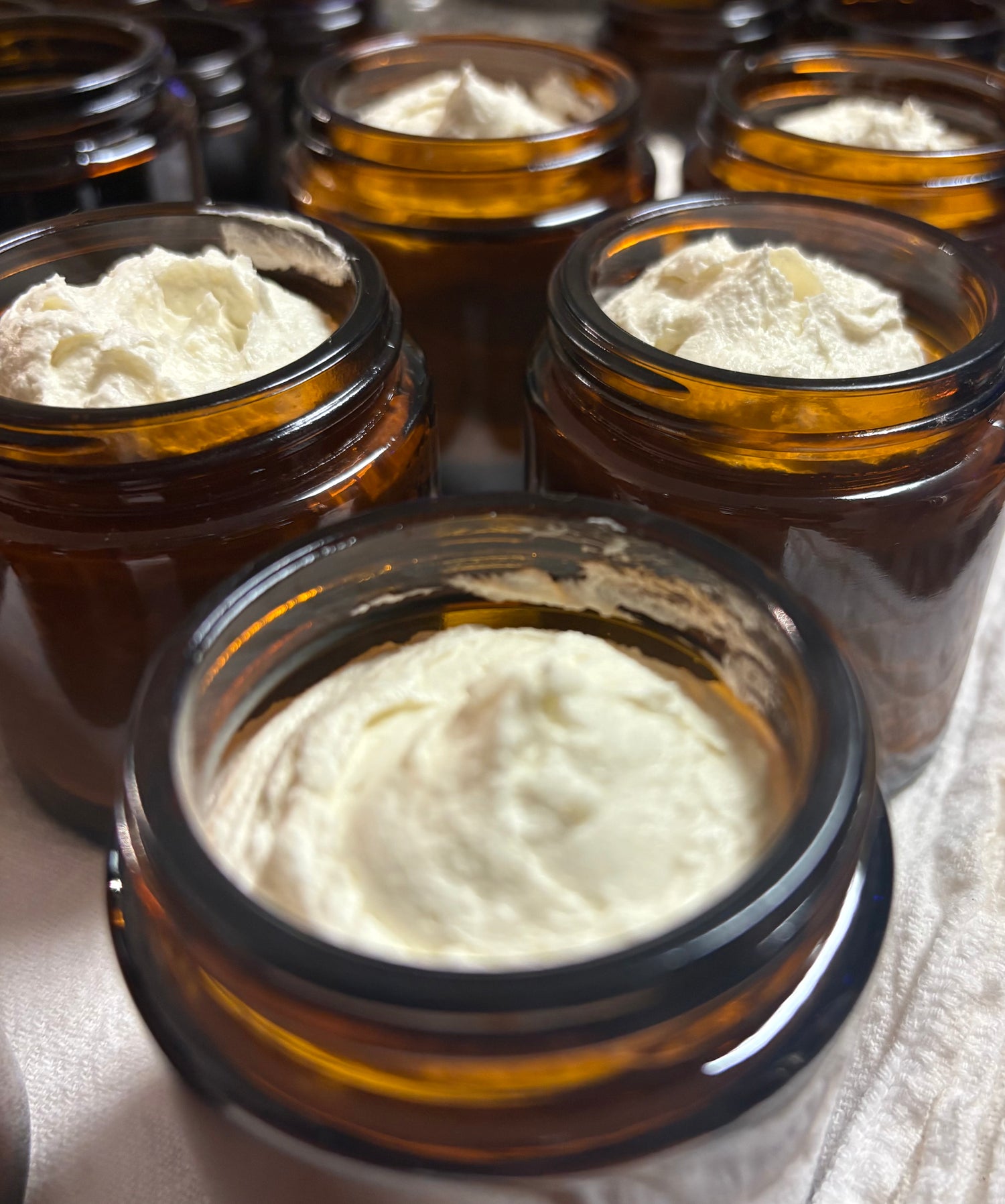 Our formulations have evolved from using essential oils to incorporating herbs. During the dry rendering process, we add the herbs, allowing the tallow to slowly absorb their benefits before straining.